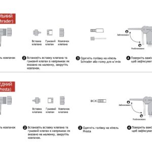Тип ніпеля: PV/FV / (Presta Valve / French Valve)AV/SV (Auto Valve / Schrader Valve)DV (Dunlop Valve)