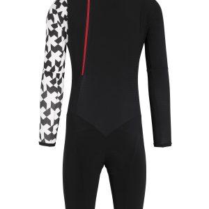 Задня блискавка: блискавка проклеєна, бігунок якої розташований в лівій задній частині виробу. На відміну від блискавок, що розташовані посередині, таке розміщення не знижує аеродинамічних властивостей переднього полотнища костюма.
