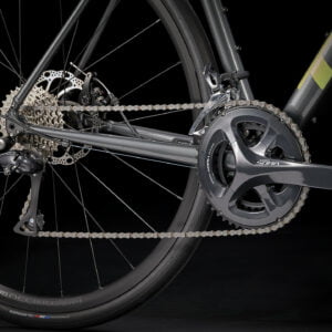 Трансмісія Shimano Sora має 18 швидкостей з вбудованими важелями гальма/перемикання. Це легша група деталей, ніж початковий груповий набір Shimano, і пропонує широкий вибір спорядження, яке чудово підходить для лазіння. Легка алюмінієва рама має стабільну геометрію Endurance для впевненої їзди, дискові гальма, карбонову вилку Domane, кріплення для крил і готові безкамерні диски.