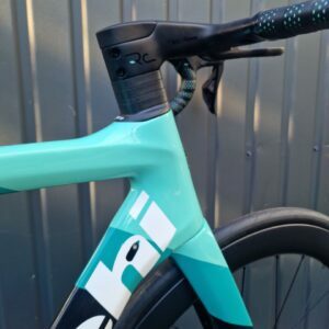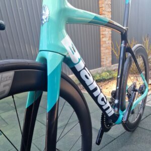 Рама: OLTRE XR4 Bianchi CV Aero carbon _механический/электронный, гарнитура 1,5″, BB-PressFit 86,5×41, внутренний трос дискового тормоза, плоская крепь, сквозная ось 12 x 142 мм, размеры 47-50-53-55- -61 см