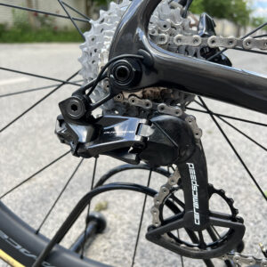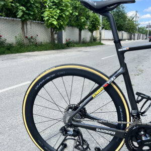 Продається командний велосипед професійного гонщика Tiesj Benoot Cervélo у відмінному стані, з паверметром, велосипед на топовому електричному обладнанні Shimano Di2 Dura-Ace, встановлена задня лапка Ceramic Speed, на колесах Shimano Dura-Ace C50.