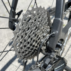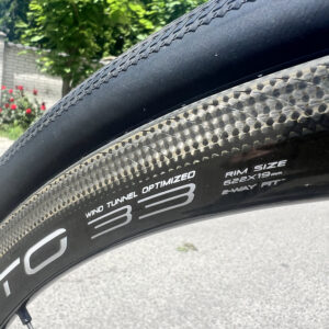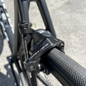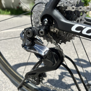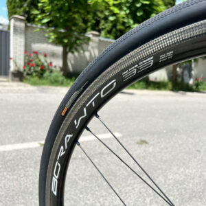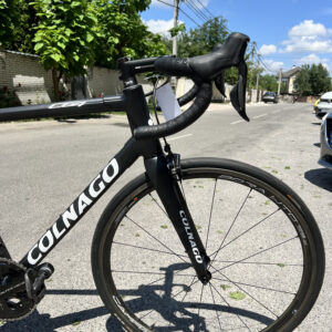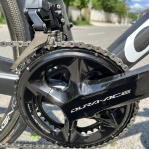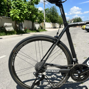 Велосипед на електричному обладнанні Shimano Di2 Dura-Ace, та колесах Campagnolo Bora WTO 33 під обідні гальма. Встановленні безкамерні покришки.