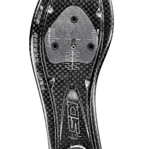 Легка та надзвичайно жорстка карбонова підошва для максимальної передачі енергії. З інтегрованими повітрозабірниками та каналами, що закриваються, для оптимальної вентиляції при високих температурах. Мінімальний вигин в області передньої частини стопи для розвантаження сухожиль та надійної протидії порушенням кровообігу. Змінна полімерна п’ята. Шкала вирівнювання для оптимального розташування педалей.